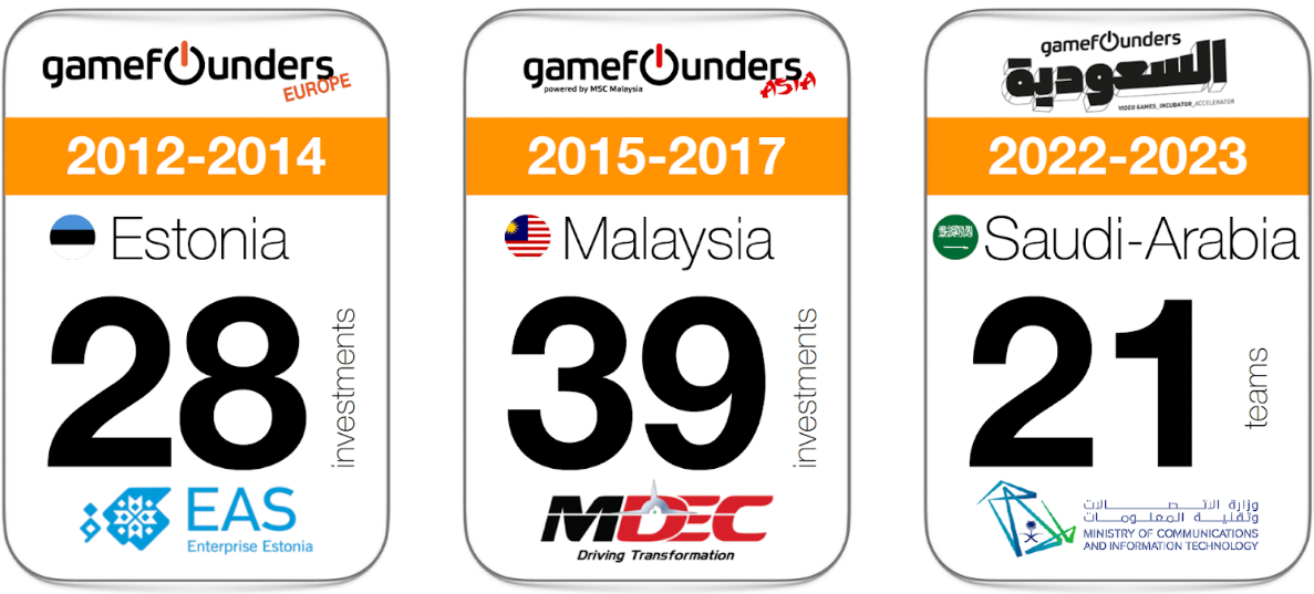 GameFounders accelerators have been based in Europe (Tallinn, Estonia), South-East Asia (Kuala Lumpur, Malaysia) and the Middle East (Riyadh, Saudi Arabia).